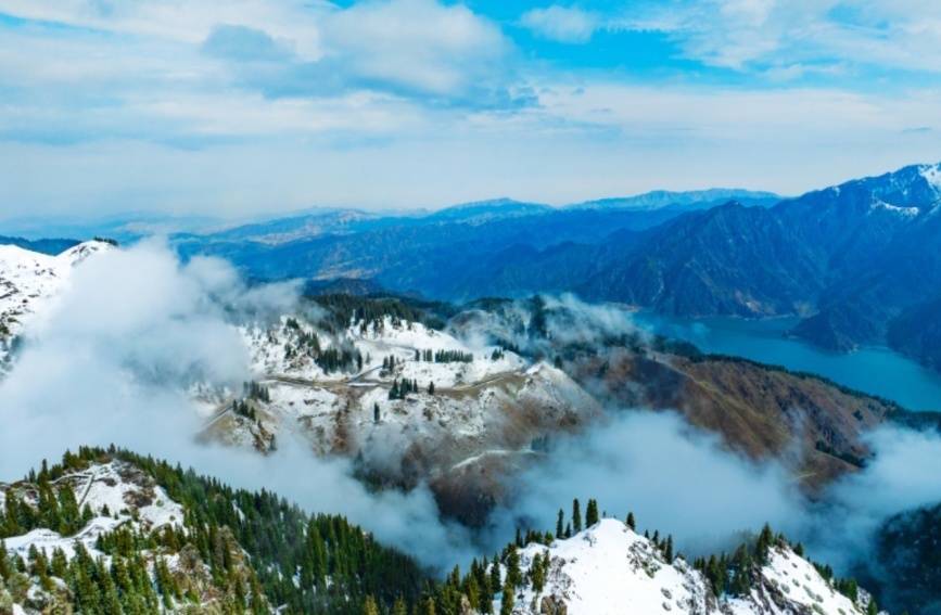 10月19日,雪后的天山天池。何龙 摄