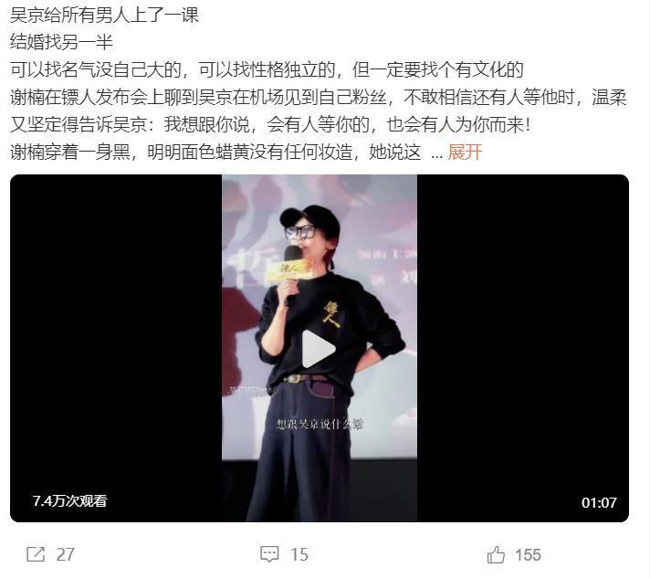 《镖人》路演的时候,很多网友都表示:吴京选择娶谢楠,太对了,因为他娶到一个有文化的老婆。