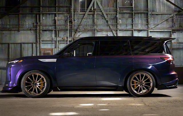 随着SEMA改装展的即将发布,在该车展上将亮相一款英菲尼迪旗下的全新车型——英菲尼迪QX80 R-Spec概念车。据此前曝光的官图以及部分信息来看,这款基于现款QX80打造的性能猛兽,不仅采用了名为Midnight Purple(官方命名,可译为:午夜紫)的渐变色车漆,更颠覆性地换装了GT-R上搭载的3.8T双涡轮增压V6发动机,可谓是有颜值更有实力。接下来,我们就一起来了解下这款新车吧。