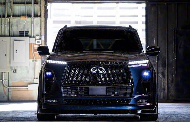 根据曝光的新车外观官图来看,英菲尼迪QX80 R-Spec概念车的外观以运动化改装重构豪华气场,午夜紫车漆成视觉核心。这款传承自 GT-R R34、R35 车型的经典车漆,在不同光线下呈现从深邃茄紫到幽蓝的渐变效果,静止时如午夜星空般神秘,运动时随光影流动迸发灵动质感。为匹配性能升级,新车还加装全套宽体套件,夸张的轮眉向外延展30mm,搭配定制前分离器与侧裙,既强化宽体视觉效果,又优化空气动力学表现。